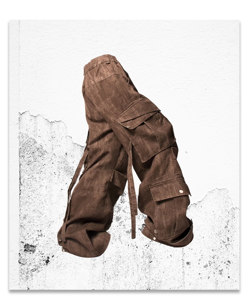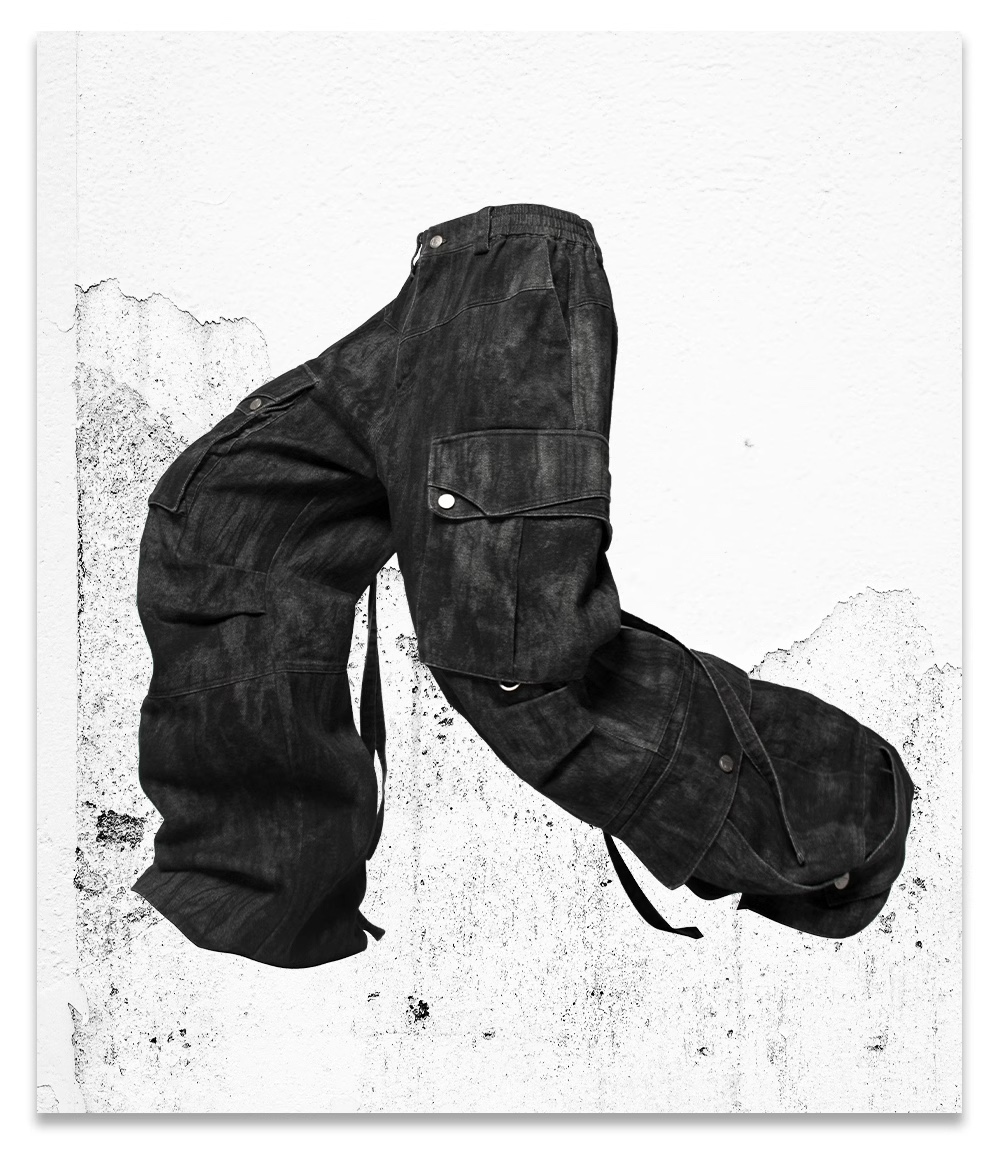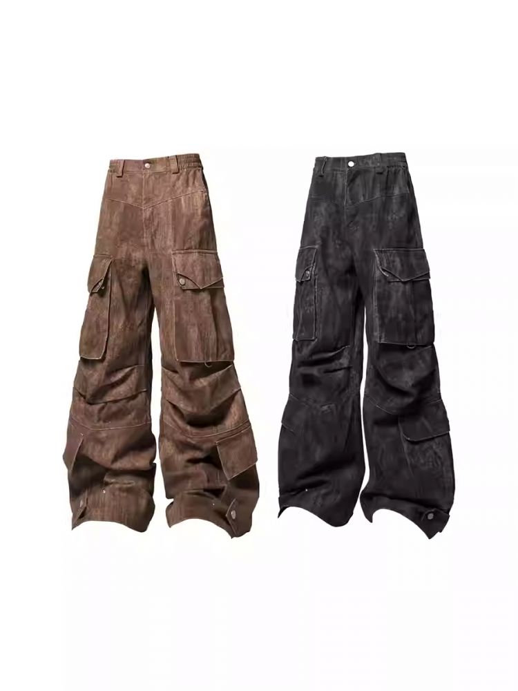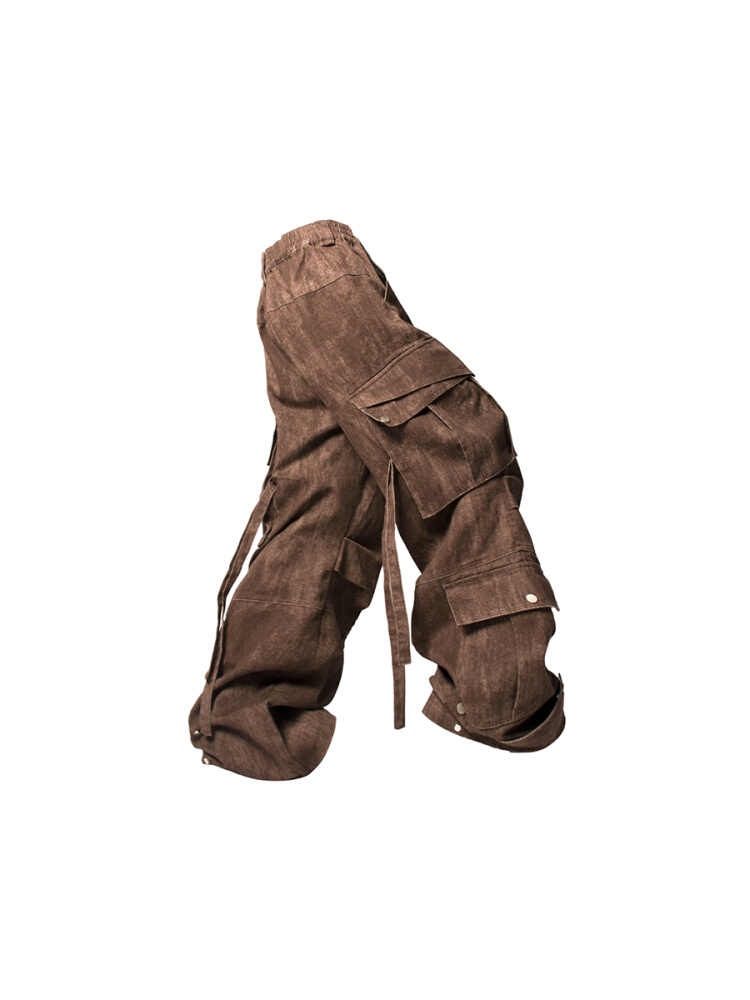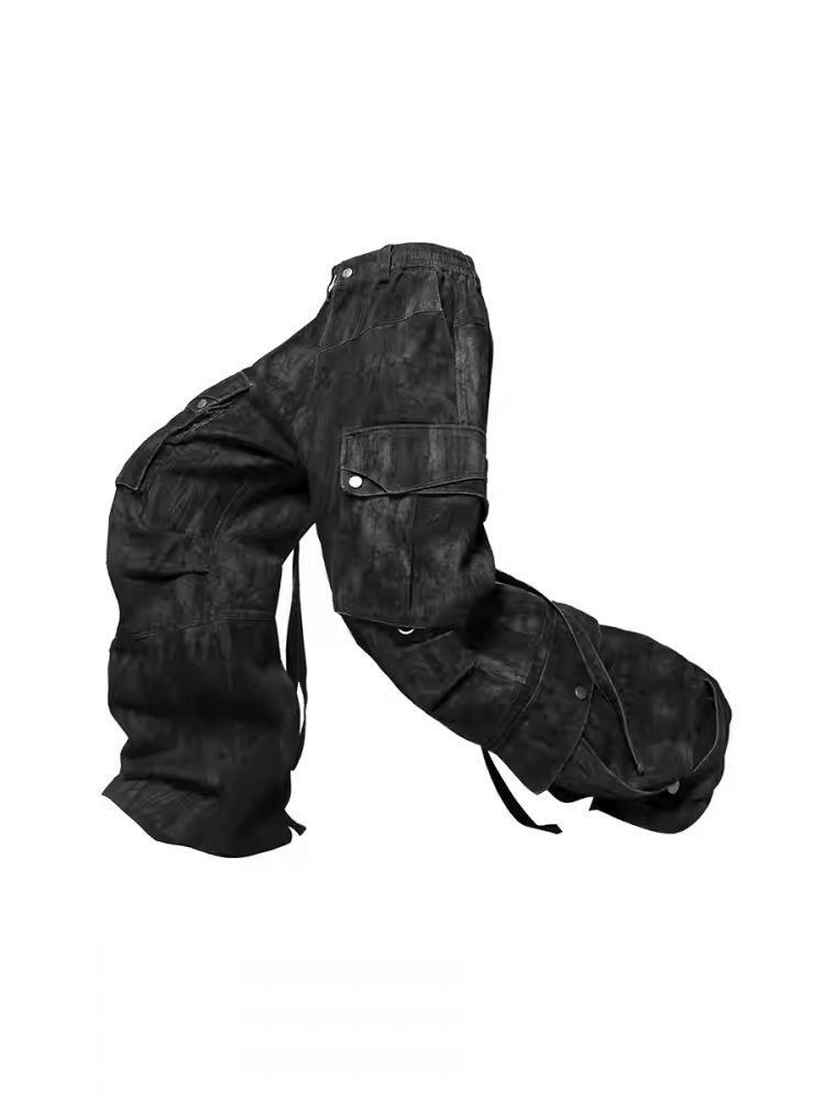 block surface multi-pocket adjustable ribbon bomber pants