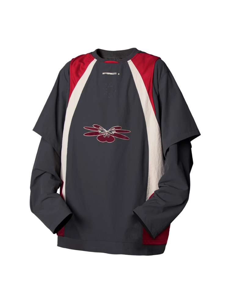 Double-layer Mesh Splicing Nylon Contrast Color Long Sleeve