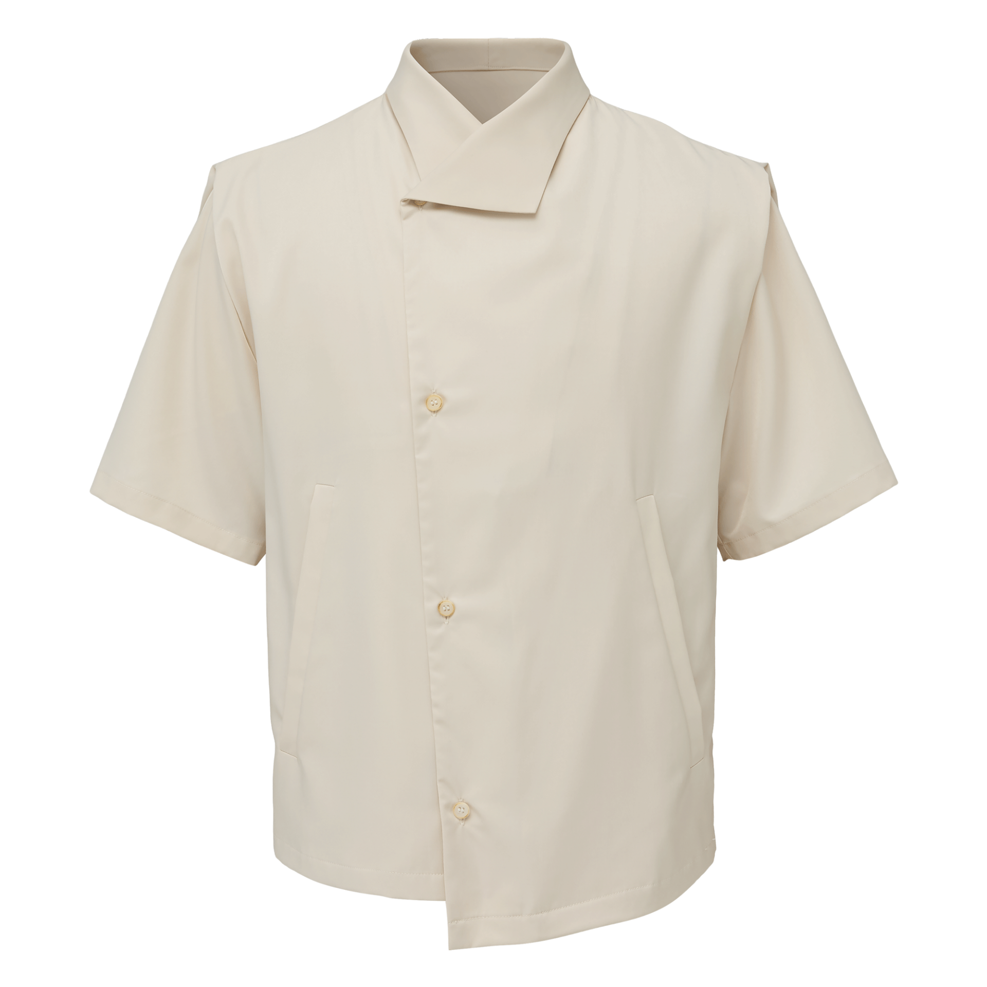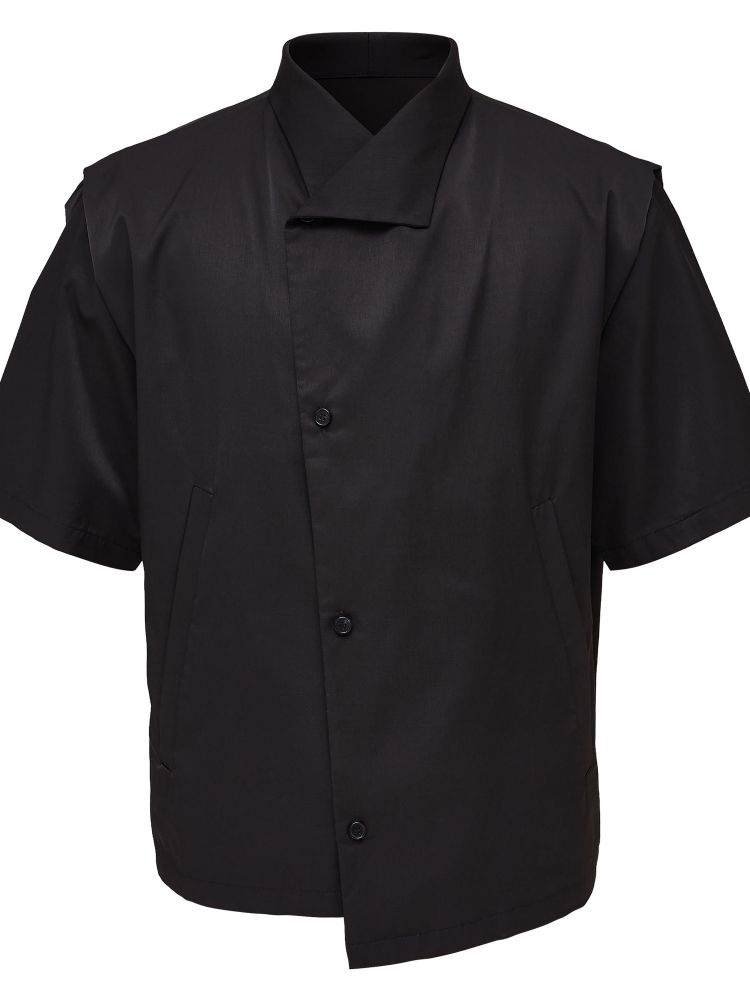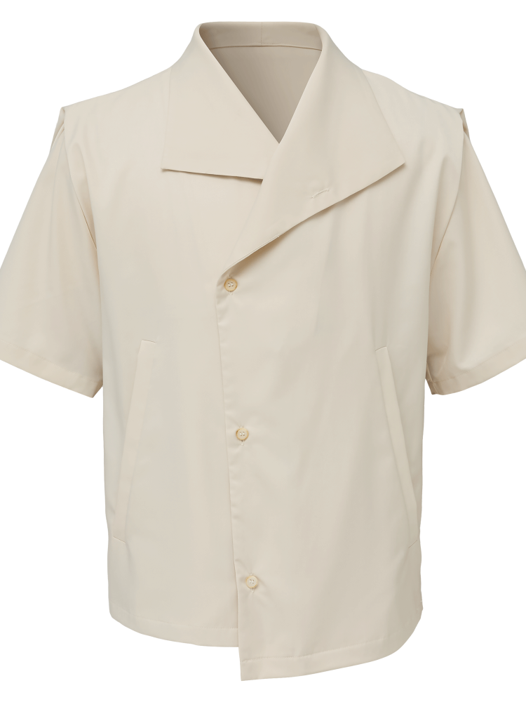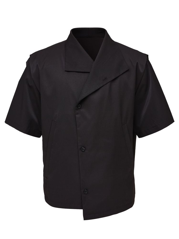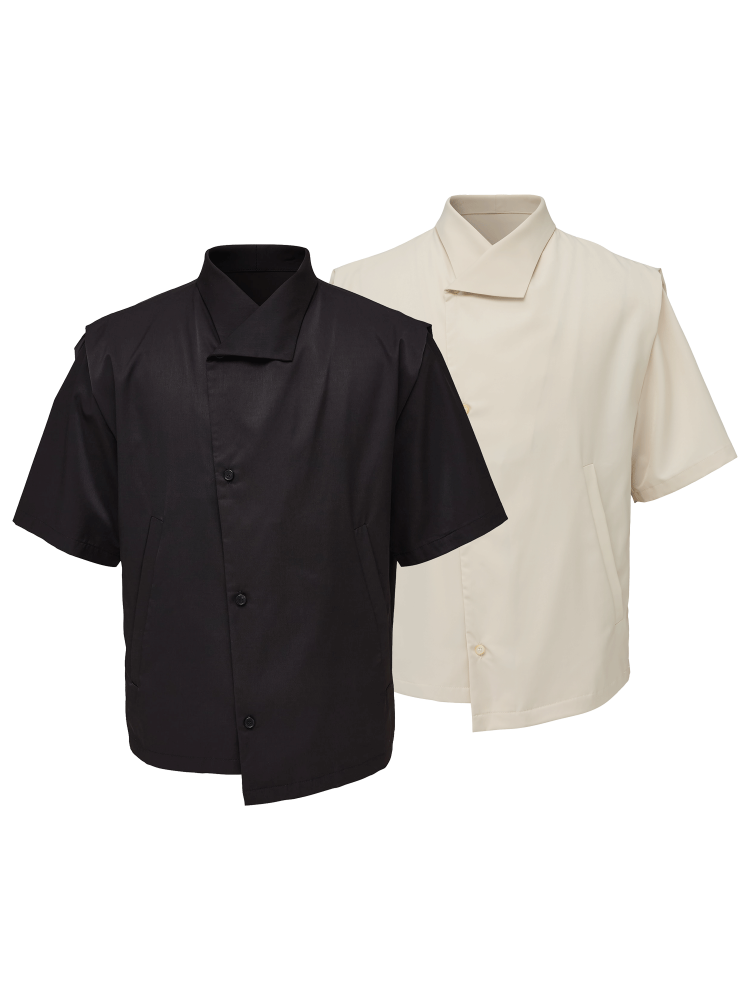 deconstructed stand-up collar cleanfit short-sleeved shirt